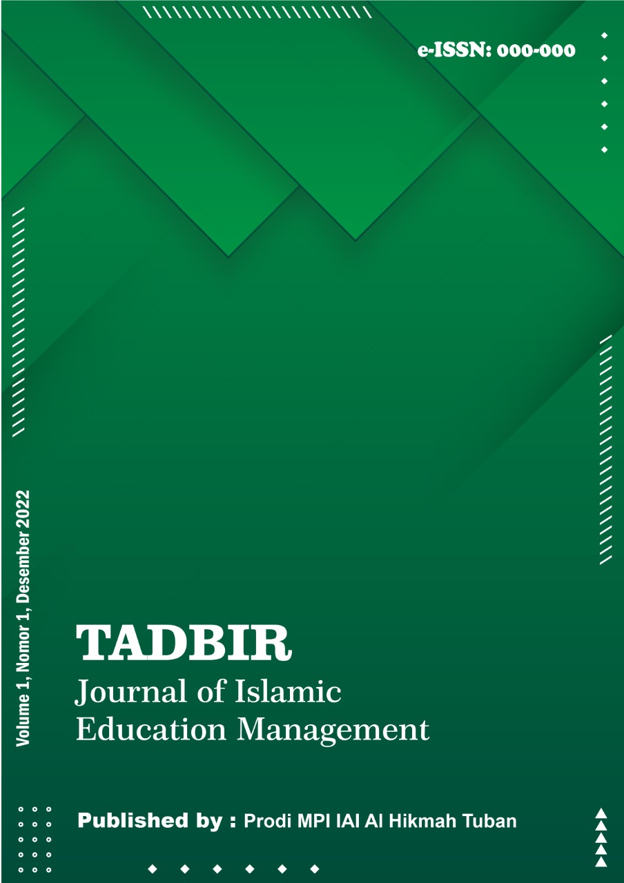TADBIR : Journal of Islamic Education Management is a journal managed by the Islamic Education Management Study Program, Al-Hikmah Indonesia University, Tuban, which is published periodically every 4 months (3 times a year) as a vehicle for communication between the academic community in the field of Islamic education management. The editorial team invites experts and academics to contribute manuscripts, either in the form of research results or in-depth studies, in accordance with the discipline of Islamic Education Management. The manuscript submitted is an original manuscript (not plagiarized) and has never been published in other media